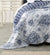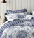 A stunning French Provincial inspired bedspread that features a scalloped edge. Traditional blue hues contrast beautifully on a white background. The bedspreads coordinate stripe printed reverse, also features on the european pillowcases and cushion. 7 Piece Set DB, QB, KB & SUPER KB, 5 Piece Set SB & KSB.