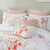 This quilt cover features a crisp white background adorned with delicate pink flowers and graceful green stems. Crafted from smooth cotton sateen, it offers a soft, lustrous finish that brings freshness and charm to your bedroom, while the quilt cover, standard pillowcases and cushions are elegantly detailed with a piped edge finish for a refined touch.